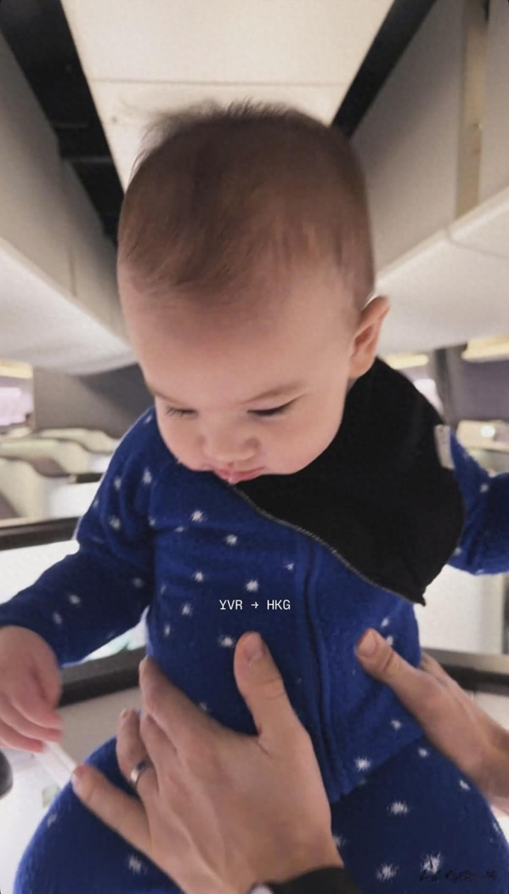 这位向来低调的星二代,果然在飞机上平直晒出了7个月大混血女儿的正脸照,还后堂堂标注了温哥华到香港的行程。
