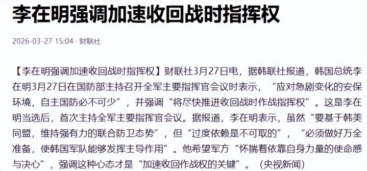 3月27日,韩国总统李在明召集三军主要诱骗官,言之成理地晓谕:将尽快鼓动收回战时作战诱骗权。