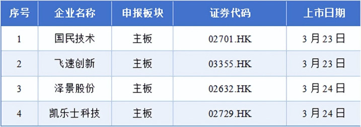 3月22日至3月28日历间暂无企业通过聆讯。